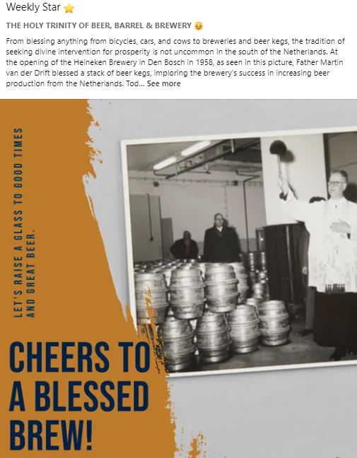 We concluded a series of storytelling sessions for the regional sales teams of HEINEKEN Netherlands. Through these storytelling sessions, we equip account managers with a deeper understanding of the history of our brands and the regions in which they operate. We debunk (or confirm) myths surrounding certain events or historical figures and provide background information on the relationship between HEINEKEN and the outlets or regions. This enriched knowledge helps our account managers build stronger connections and offer more informed service to their clients.